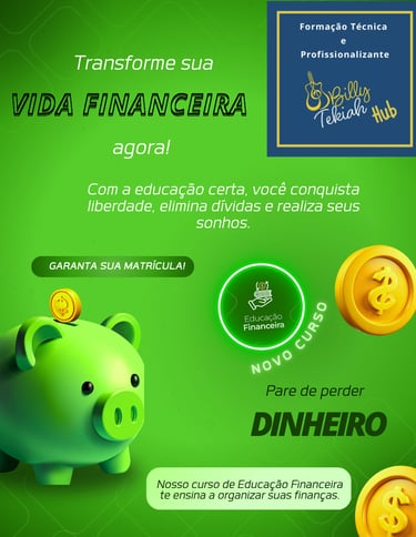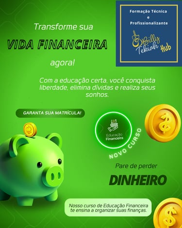 Com este curso, você aprenderá a controlar seu orçamento, planejar financeiramente seus objetivos e tomar decisões mais seguras com o dinheiro. Vai entender como investir, evitar erros comuns e explorar fontes de renda alternativas. Também desenvolverá hábitos saudáveis e conscientes para seu futuro financeiro.